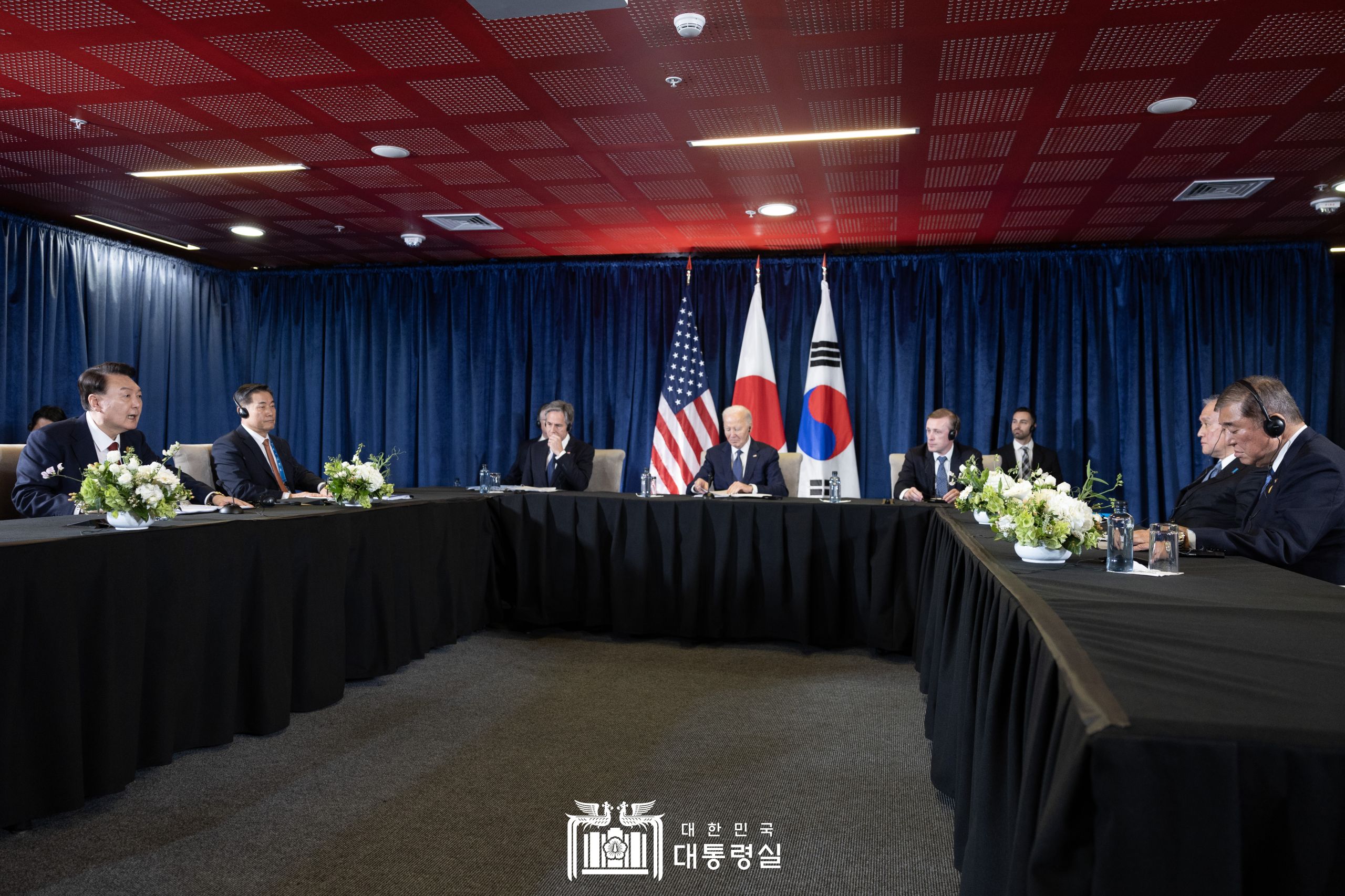 오늘 만남은 한미일 협력의 지속적 발전에 대한 3국의 굳건한 의지를 잘 보여주고 있습니다. 글로벌 복합 위기 속에서 한미일 협력은 3국 모두의 국익에 부합할 뿐 아니라 인태지역의 평화와 번영을 위해 필수적입니다.